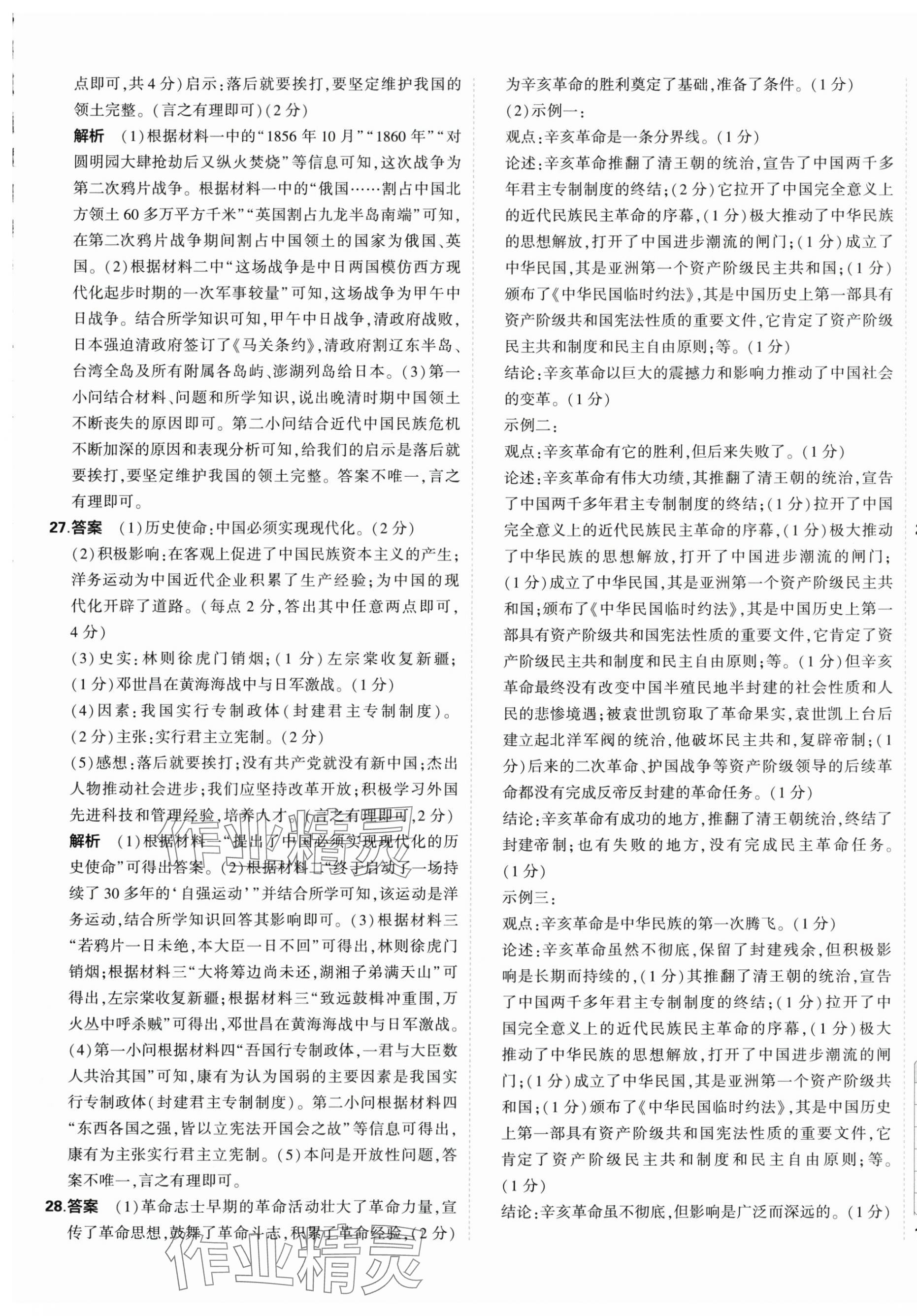 2025年5年中考3年模拟初中试卷八年级历史上册人教版