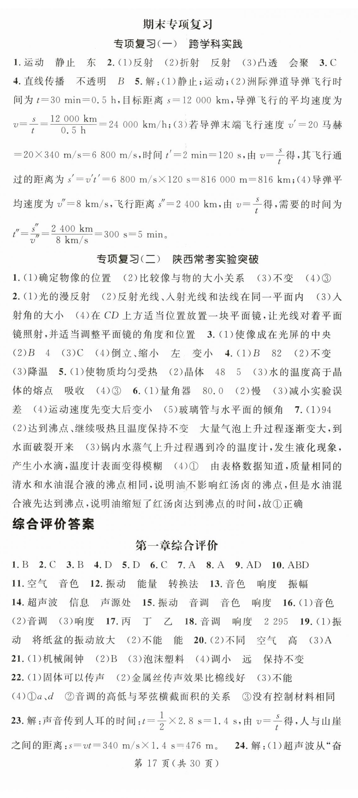 注:目前有些书本章节名称可能整理的还不是很完善,但都是按照顺序排列的,请同学们按照顺序仔细查找。练习册 2025年名师测控八年级物理上册苏科版陕西专版 答案主要是用来给同学们做完题方便对答案用的,请勿直接抄袭。