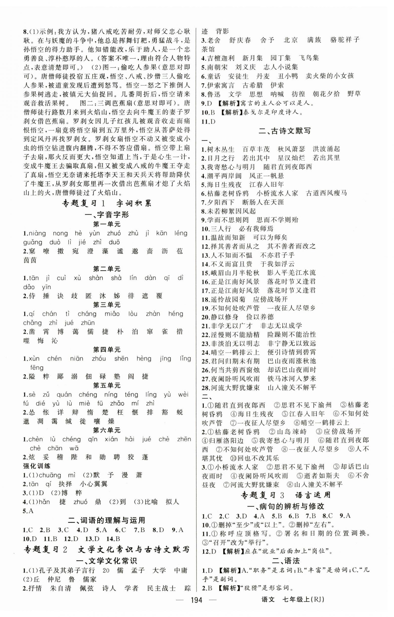 注:目前有些书本章节名称可能整理的还不是很完善,但都是按照顺序排列的,请同学们按照顺序仔细查找。练习册 2025年四清导航七年级语文上册人教版河南专版 答案主要是用来给同学们做完题方便对答案用的,请勿直接抄袭。