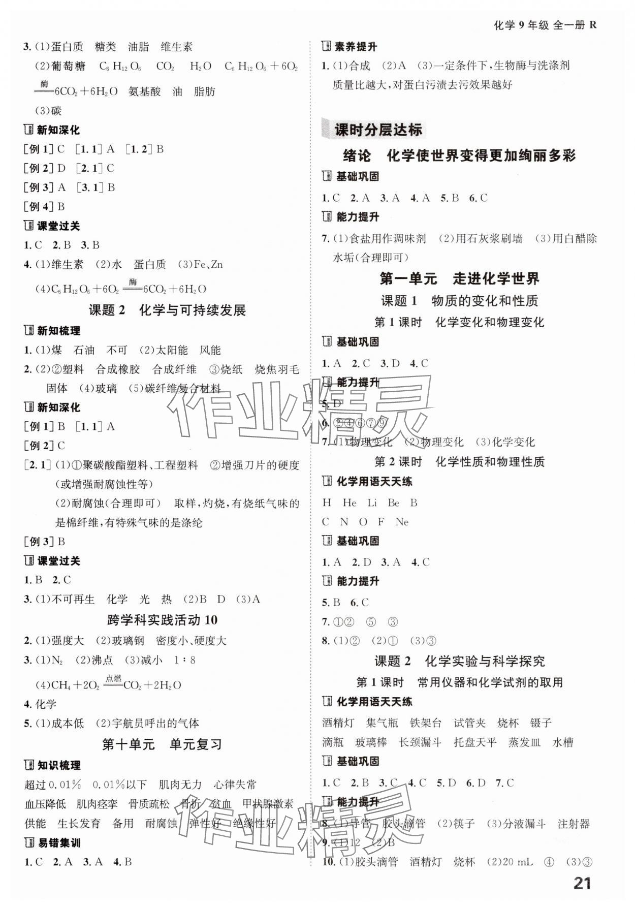 注:目前有些书本章节名称可能整理的还不是很完善,但都是按照顺序排列的,请同学们按照顺序仔细查找。练习册 2025年全程突破九年级化学全一册人教版 答案主要是用来给同学们做完题方便对答案用的,请勿直接抄袭。