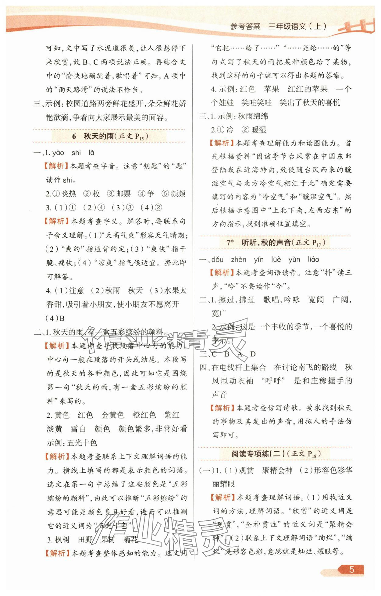2025年教材全练三年级语文上册人教版广东专版 参考答案第5页