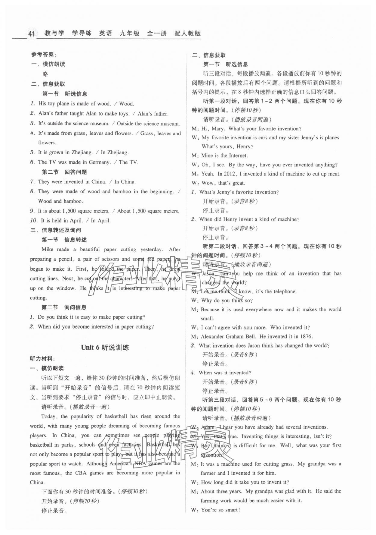 注:目前有些书本章节名称可能整理的还不是很完善,但都是按照顺序排列的,请同学们按照顺序仔细查找。练习册 2025年教与学学导练九年级英语全一册人教版 答案主要是用来给同学们做完题方便对答案用的,请勿直接抄袭。