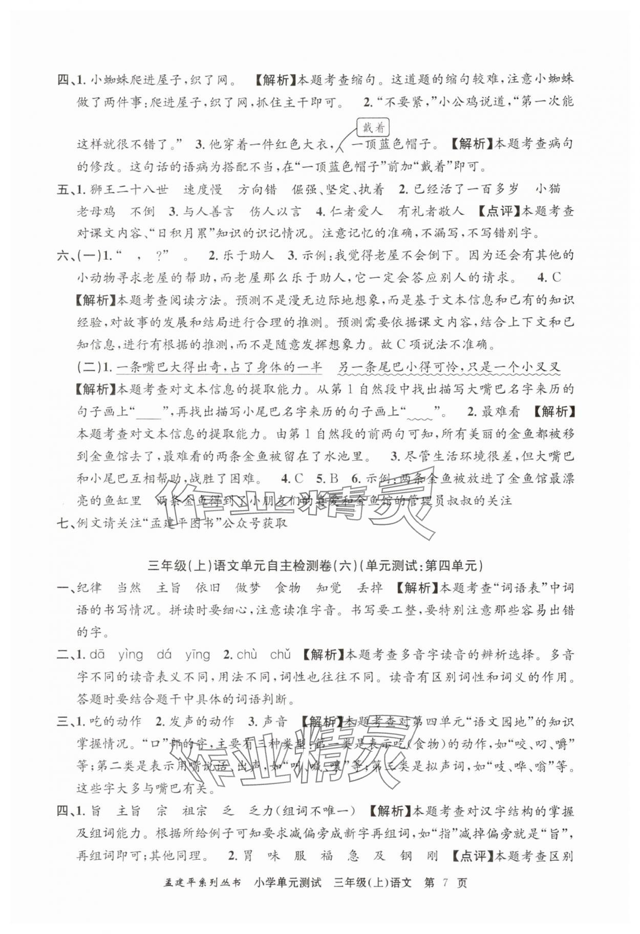 注:目前有些书本章节名称可能整理的还不是很完善,但都是按照顺序排列的,请同学们按照顺序仔细查找。练习册 2025年孟建平小学单元测试三年级语文上册人教版 答案主要是用来给同学们做完题方便对答案用的,请勿直接抄袭。