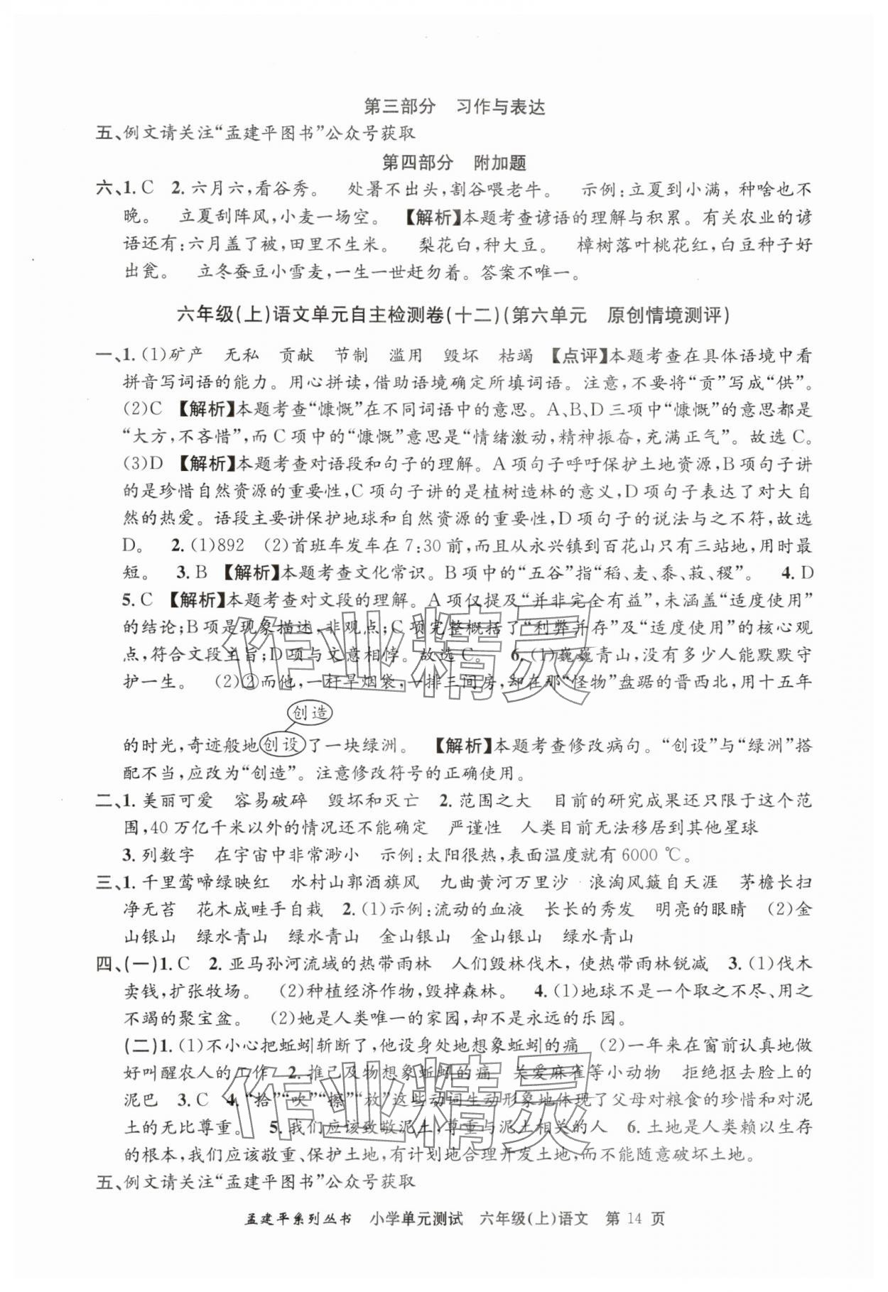 注:目前有些书本章节名称可能整理的还不是很完善,但都是按照顺序排列的,请同学们按照顺序仔细查找。练习册 2025年孟建平单元测试六年级语文上册人教版 答案主要是用来给同学们做完题方便对答案用的,请勿直接抄袭。