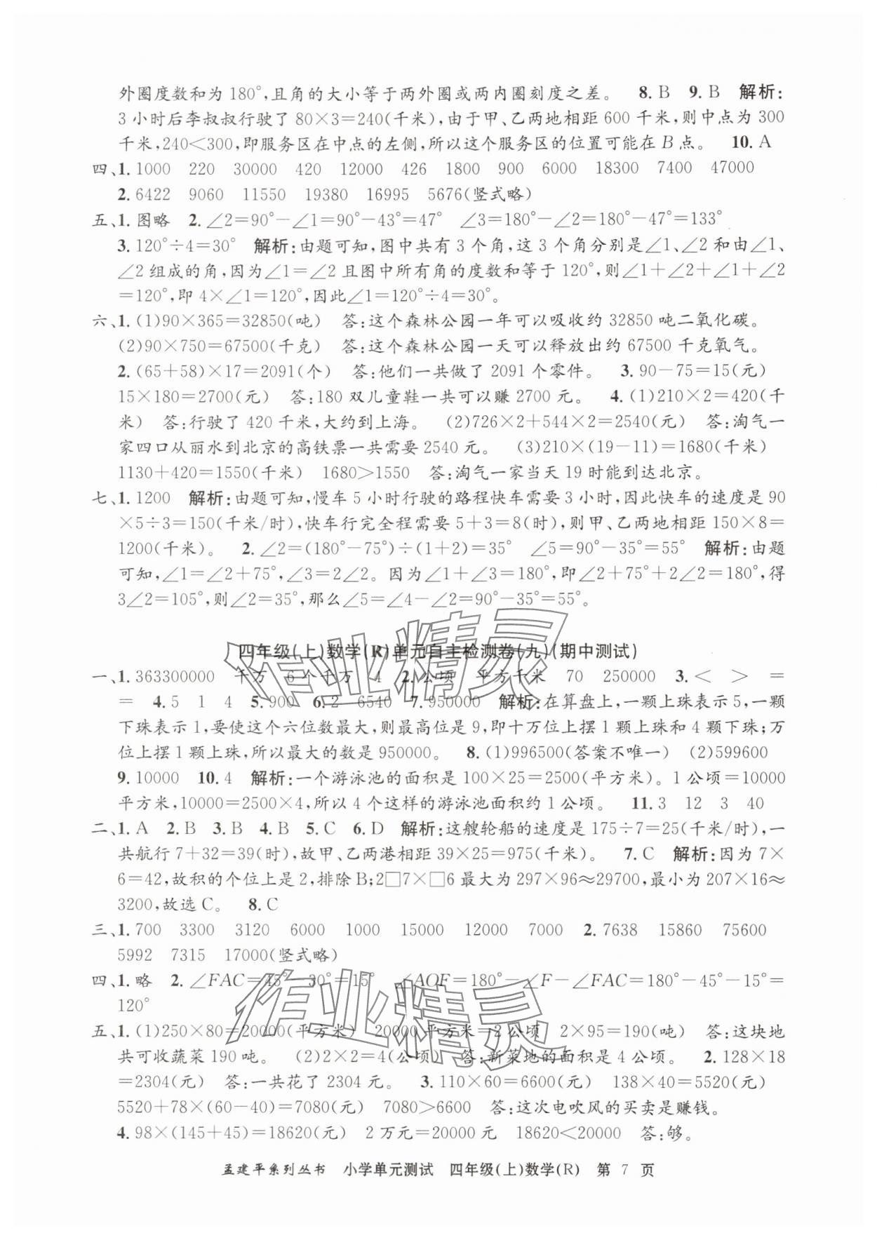 注:目前有些书本章节名称可能整理的还不是很完善,但都是按照顺序排列的,请同学们按照顺序仔细查找。练习册 2025年孟建平单元测试四年级数学上册人教版 答案主要是用来给同学们做完题方便对答案用的,请勿直接抄袭。