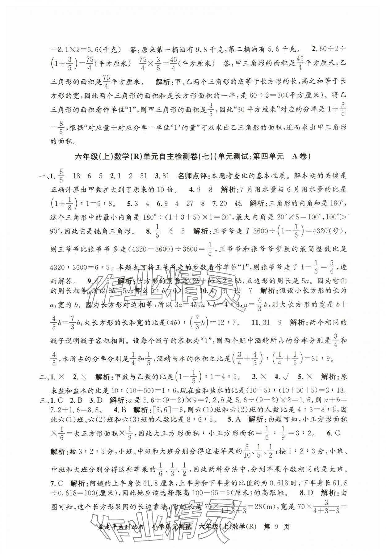 注:目前有些书本章节名称可能整理的还不是很完善,但都是按照顺序排列的,请同学们按照顺序仔细查找。练习册 2025年孟建平单元测试六年级数学上册人教版 答案主要是用来给同学们做完题方便对答案用的,请勿直接抄袭。