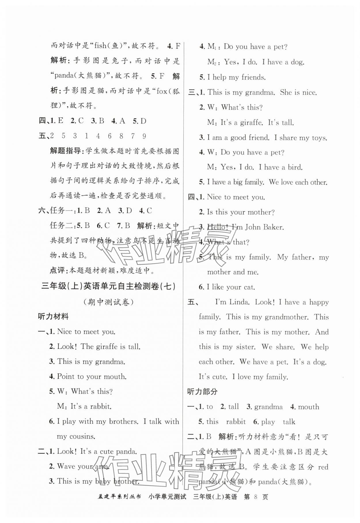 注:目前有些书本章节名称可能整理的还不是很完善,但都是按照顺序排列的,请同学们按照顺序仔细查找。练习册 2025年孟建平单元测试三年级英语上册人教版 答案主要是用来给同学们做完题方便对答案用的,请勿直接抄袭。