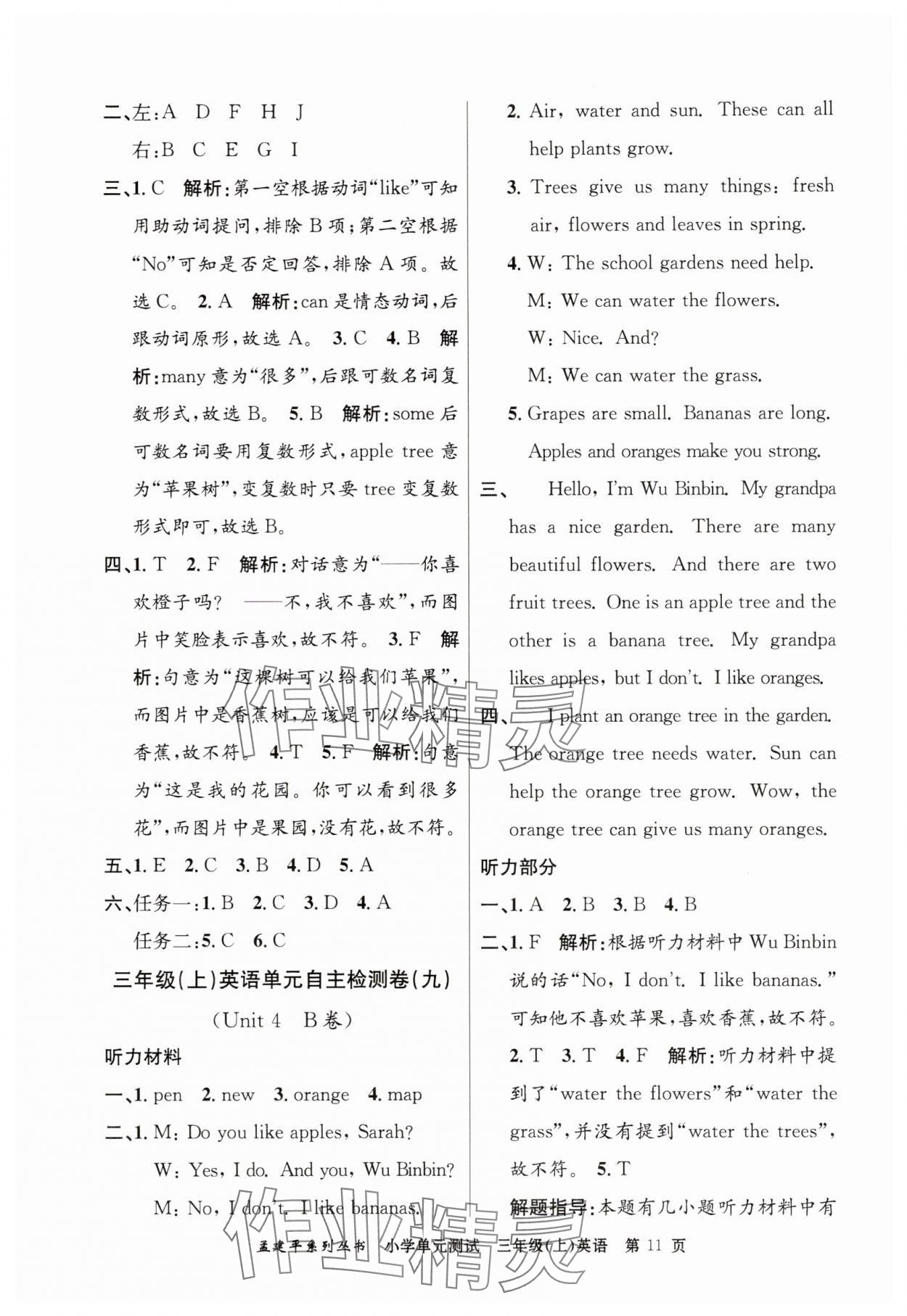注:目前有些书本章节名称可能整理的还不是很完善,但都是按照顺序排列的,请同学们按照顺序仔细查找。练习册 2025年孟建平单元测试三年级英语上册人教版 答案主要是用来给同学们做完题方便对答案用的,请勿直接抄袭。