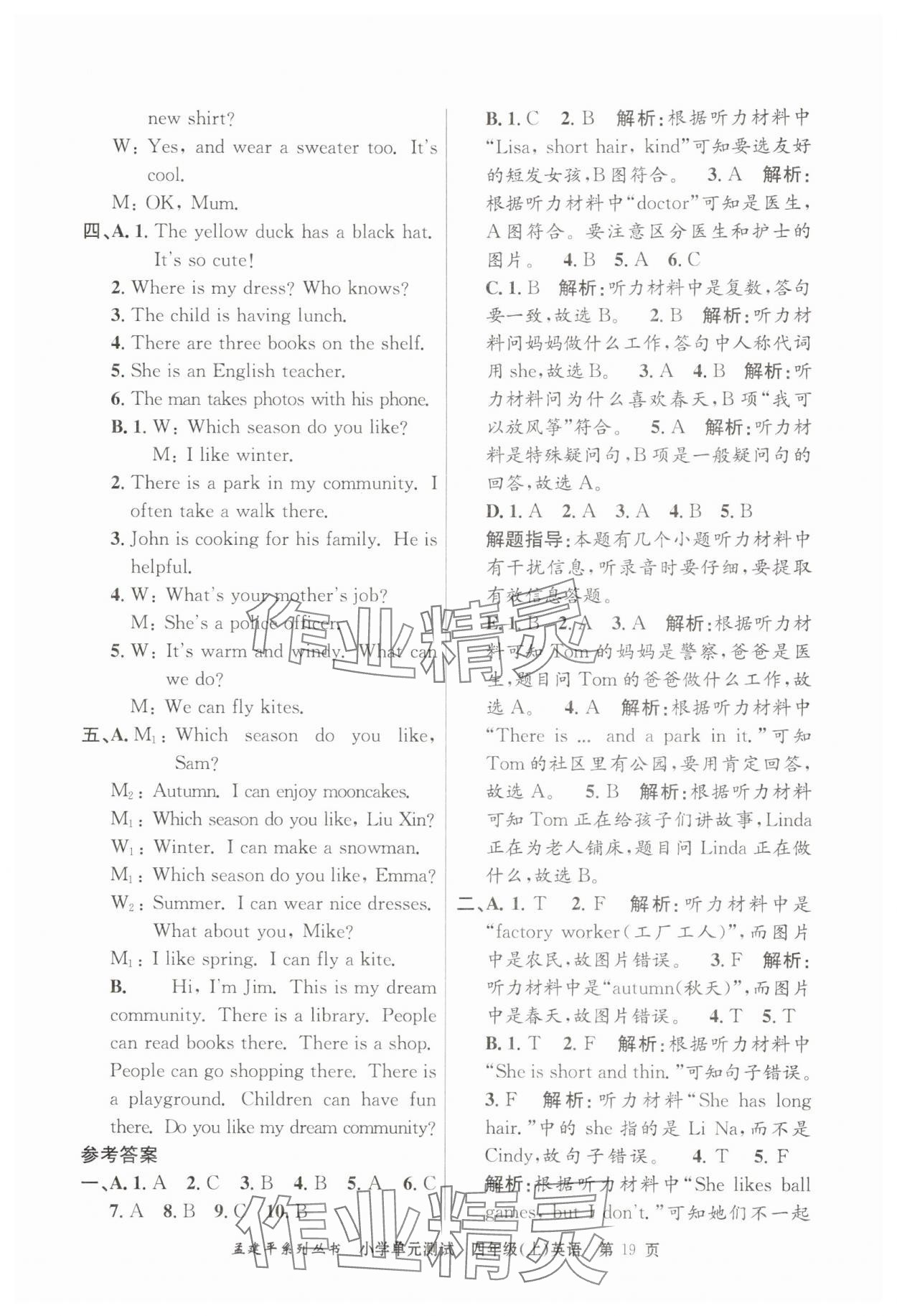 注:目前有些书本章节名称可能整理的还不是很完善,但都是按照顺序排列的,请同学们按照顺序仔细查找。练习册 2025年孟建平单元测试四年级英语上册人教版 答案主要是用来给同学们做完题方便对答案用的,请勿直接抄袭。