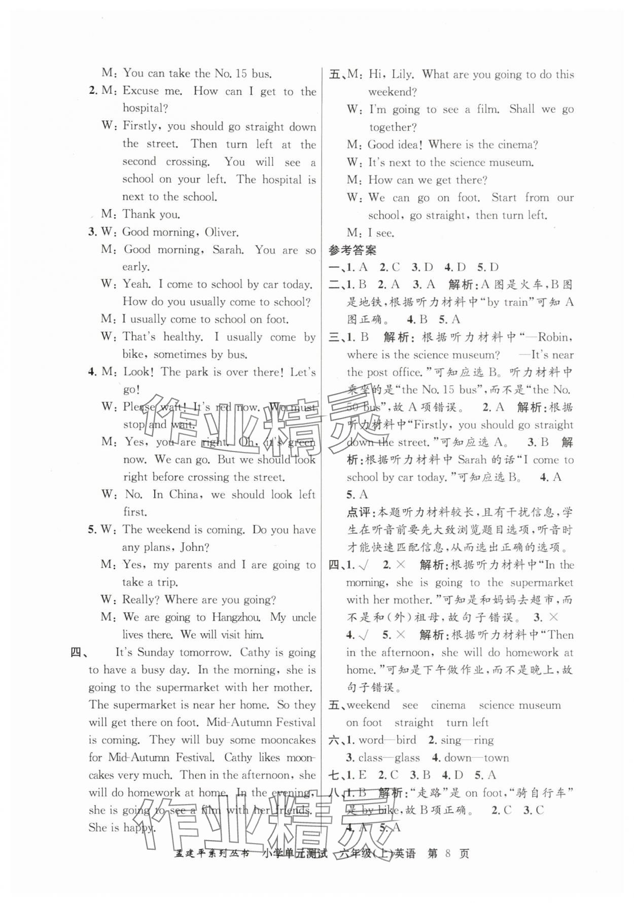 注:目前有些书本章节名称可能整理的还不是很完善,但都是按照顺序排列的,请同学们按照顺序仔细查找。练习册 2025年孟建平单元测试六年级英语上册人教版 答案主要是用来给同学们做完题方便对答案用的,请勿直接抄袭。