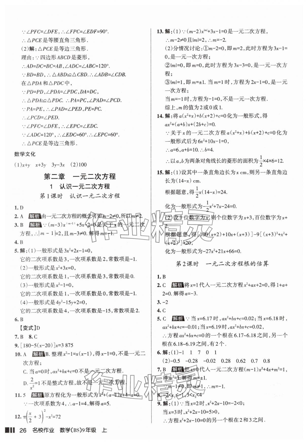 注:目前有些书本章节名称可能整理的还不是很完善,但都是按照顺序排列的,请同学们按照顺序仔细查找。练习册 2025年名校作业九年级数学上册北师大版山西专版 答案主要是用来给同学们做完题方便对答案用的,请勿直接抄袭。