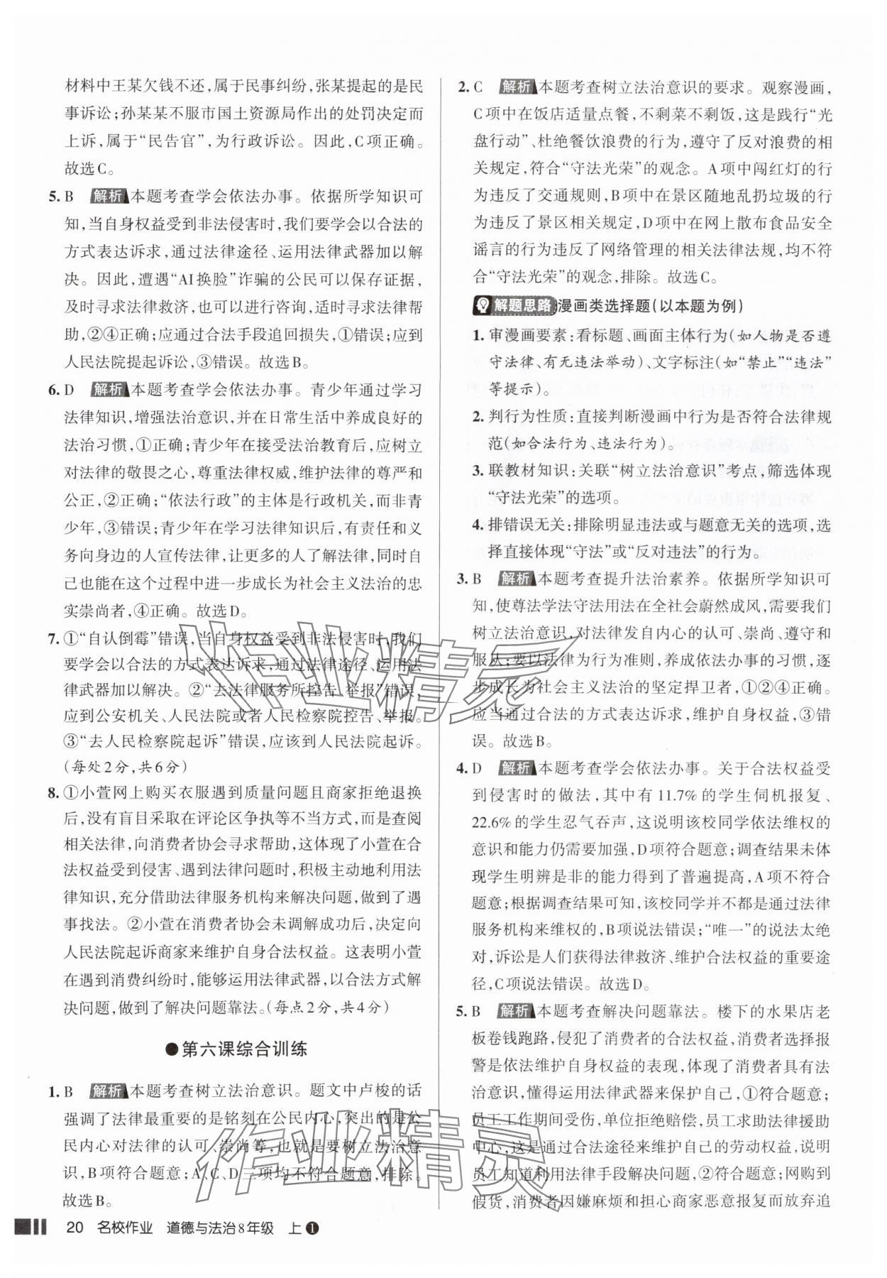 注:目前有些书本章节名称可能整理的还不是很完善,但都是按照顺序排列的,请同学们按照顺序仔细查找。练习册 2025年名校作业八年级道德与法治上册人教版山西专版 答案主要是用来给同学们做完题方便对答案用的,请勿直接抄袭。