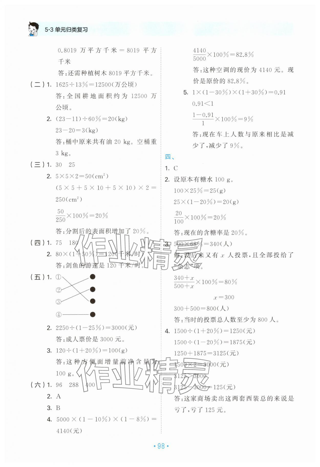 注:目前有些书本章节名称可能整理的还不是很完善,但都是按照顺序排列的,请同学们按照顺序仔细查找。练习册 2025年53单元归类复习六年级数学上册人教版 答案主要是用来给同学们做完题方便对答案用的,请勿直接抄袭。