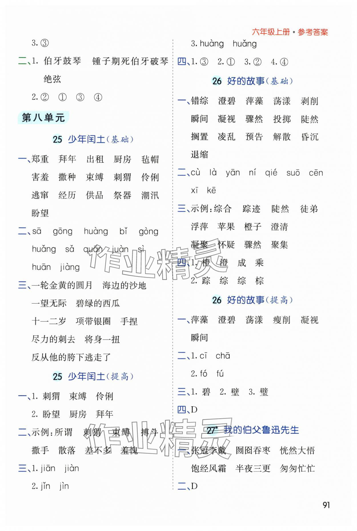注:目前有些书本章节名称可能整理的还不是很完善,但都是按照顺序排列的,请同学们按照顺序仔细查找。练习册 2025年七彩课堂默写天天练六年级语文上册人教版 答案主要是用来给同学们做完题方便对答案用的,请勿直接抄袭。