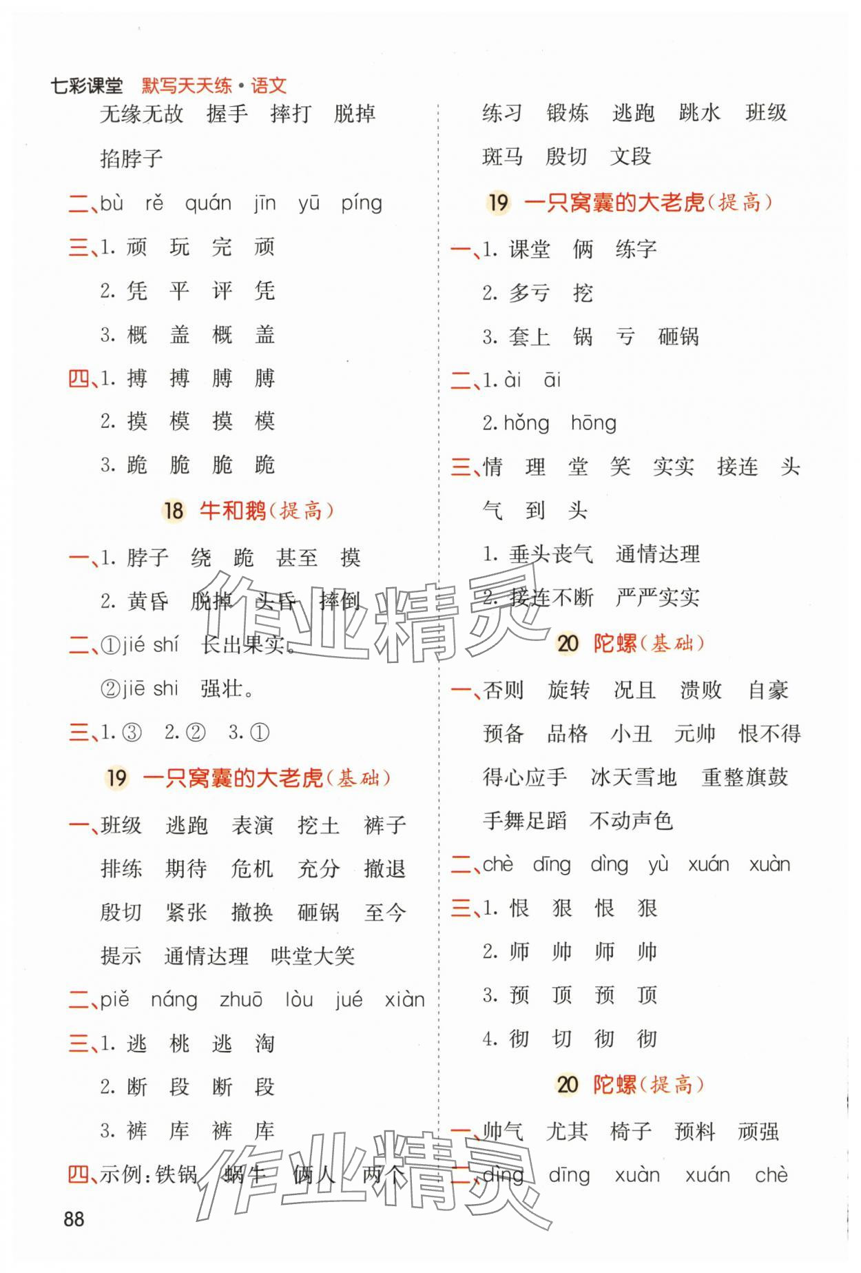 注:目前有些书本章节名称可能整理的还不是很完善,但都是按照顺序排列的,请同学们按照顺序仔细查找。练习册 2025年七彩课堂默写天天练四年级语文上册人教版 答案主要是用来给同学们做完题方便对答案用的,请勿直接抄袭。