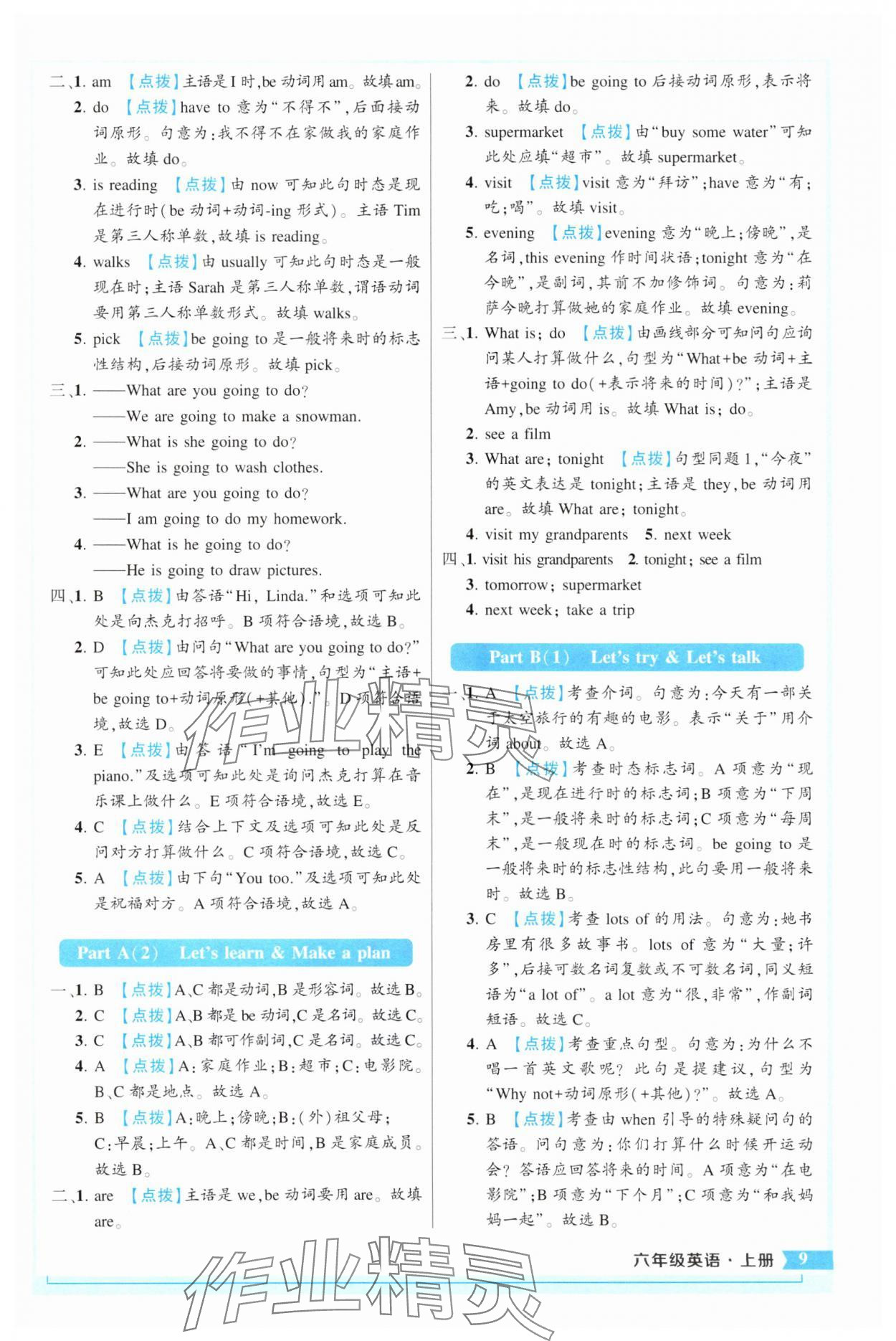 2025年黄冈状元成才路状元作业本六年级英语上册人教版 参考答案第9页