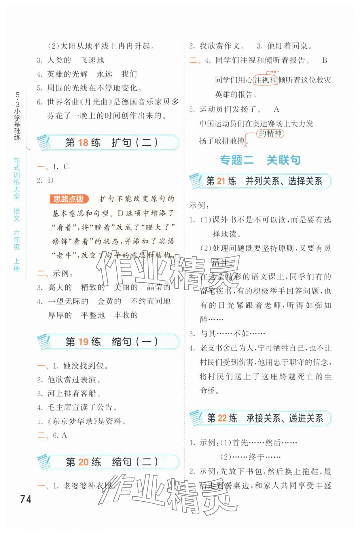 注:目前有些书本章节名称可能整理的还不是很完善,但都是按照顺序排列的,请同学们按照顺序仔细查找。练习册 2025年句式训练大全六年级语文上册人教版 答案主要是用来给同学们做完题方便对答案用的,请勿直接抄袭。