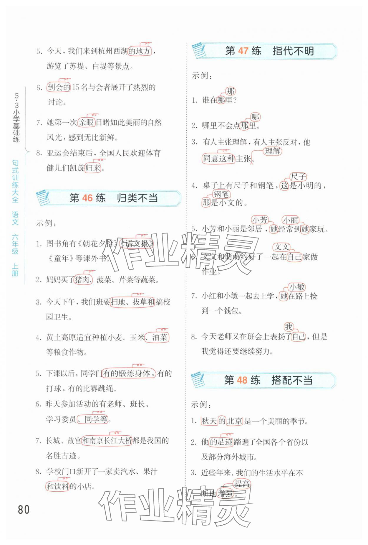 注:目前有些书本章节名称可能整理的还不是很完善,但都是按照顺序排列的,请同学们按照顺序仔细查找。练习册 2025年句式训练大全六年级语文上册人教版 答案主要是用来给同学们做完题方便对答案用的,请勿直接抄袭。