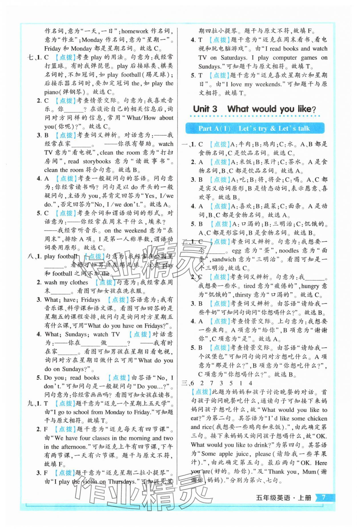 2025年黄冈状元成才路状元作业本五年级英语上册人教版 参考答案第7页