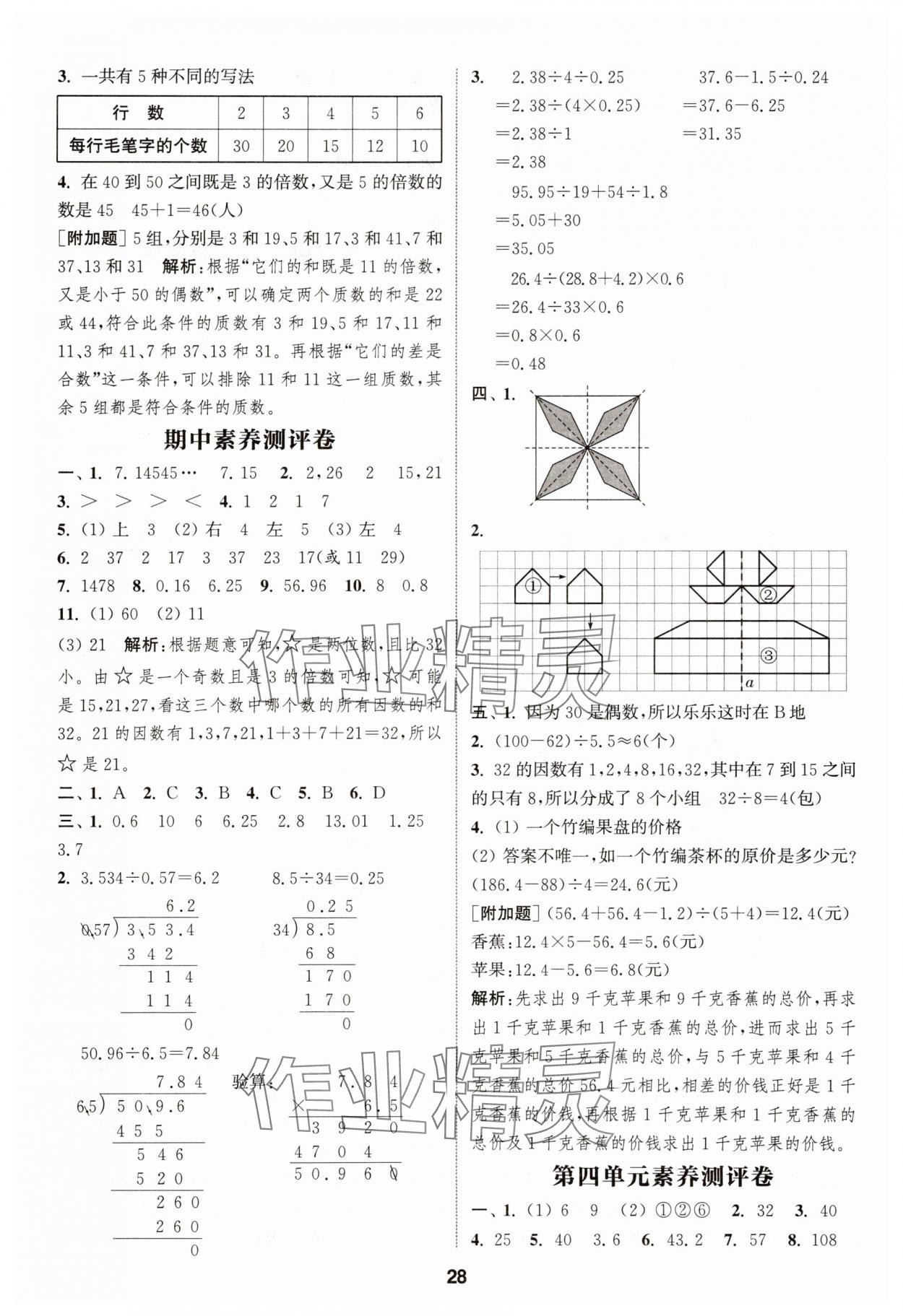 注:目前有些书本章节名称可能整理的还不是很完善,但都是按照顺序排列的,请同学们按照顺序仔细查找。练习册 2025年通城学典课时作业本五年级数学上册北师大版 答案主要是用来给同学们做完题方便对答案用的,请勿直接抄袭。
