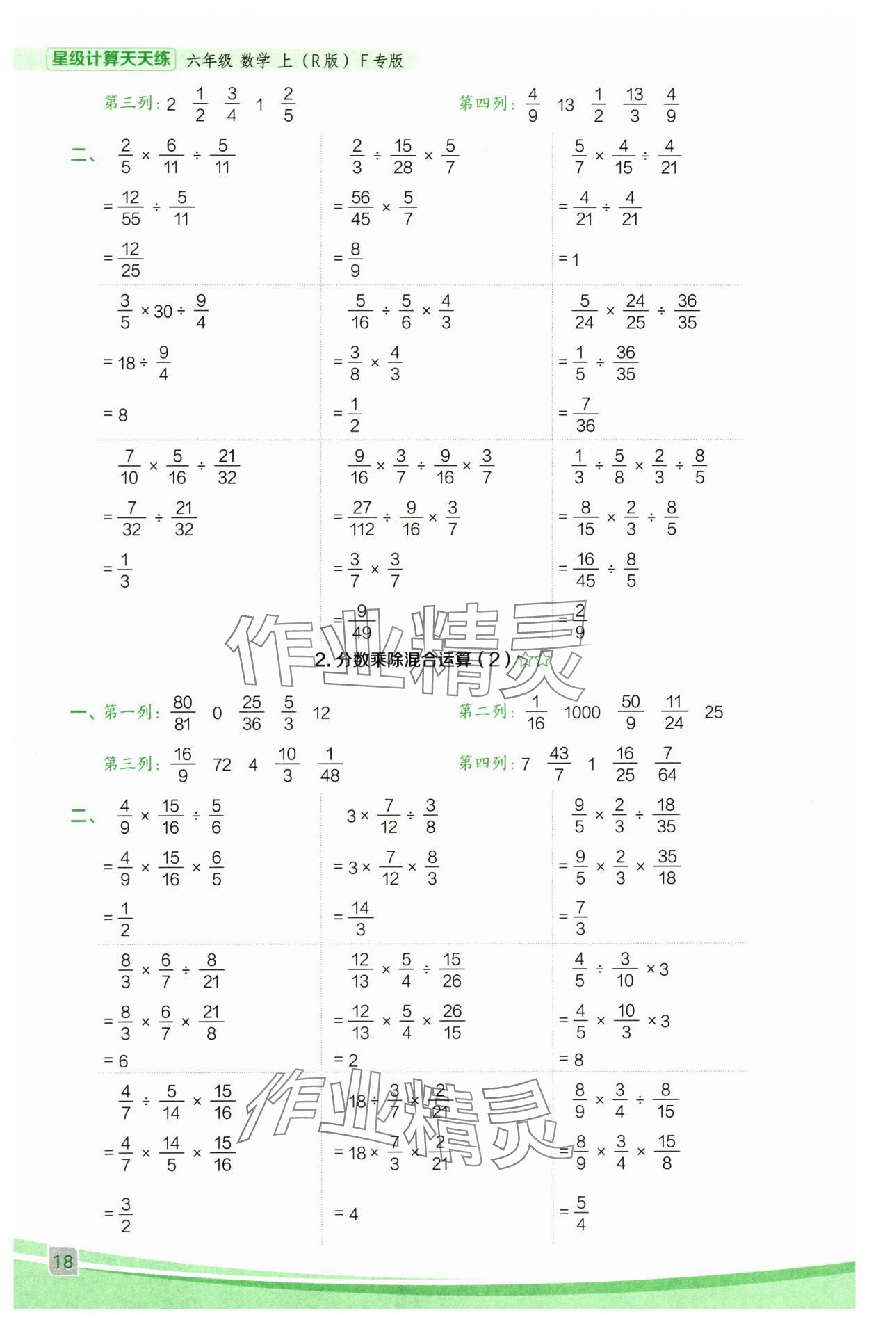 注:目前有些书本章节名称可能整理的还不是很完善,但都是按照顺序排列的,请同学们按照顺序仔细查找。练习册 2025年星级口算天天练六年级数学上册人教版F专版 答案主要是用来给同学们做完题方便对答案用的,请勿直接抄袭。