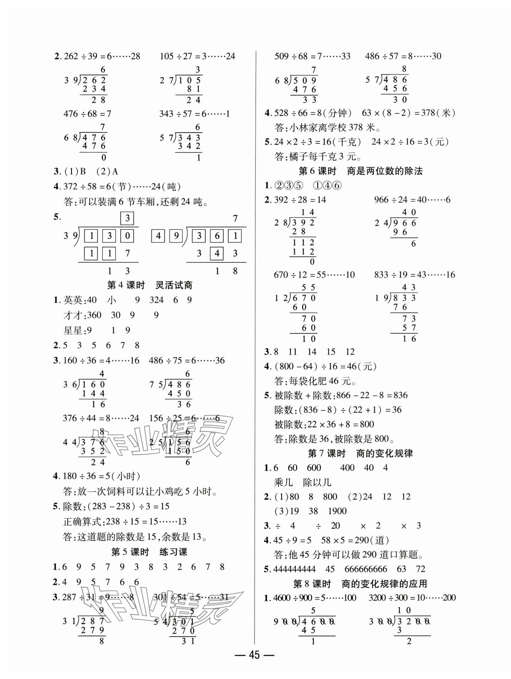 注:目前有些书本章节名称可能整理的还不是很完善,但都是按照顺序排列的,请同学们按照顺序仔细查找。练习册 2025年尚学生香英才天天练四年级数学上册人教版 答案主要是用来给同学们做完题方便对答案用的,请勿直接抄袭。