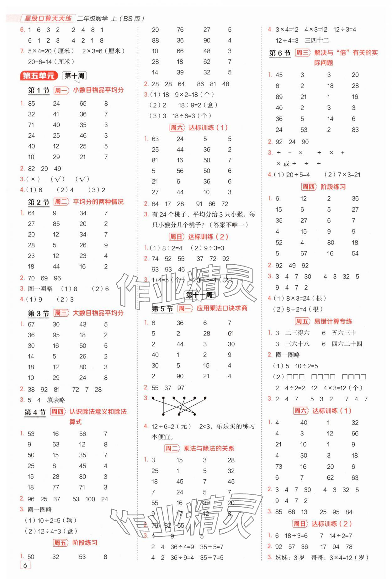 注:目前有些书本章节名称可能整理的还不是很完善,但都是按照顺序排列的,请同学们按照顺序仔细查找。练习册 2025年星级口算天天练二年级数学上册北师大版 答案主要是用来给同学们做完题方便对答案用的,请勿直接抄袭。