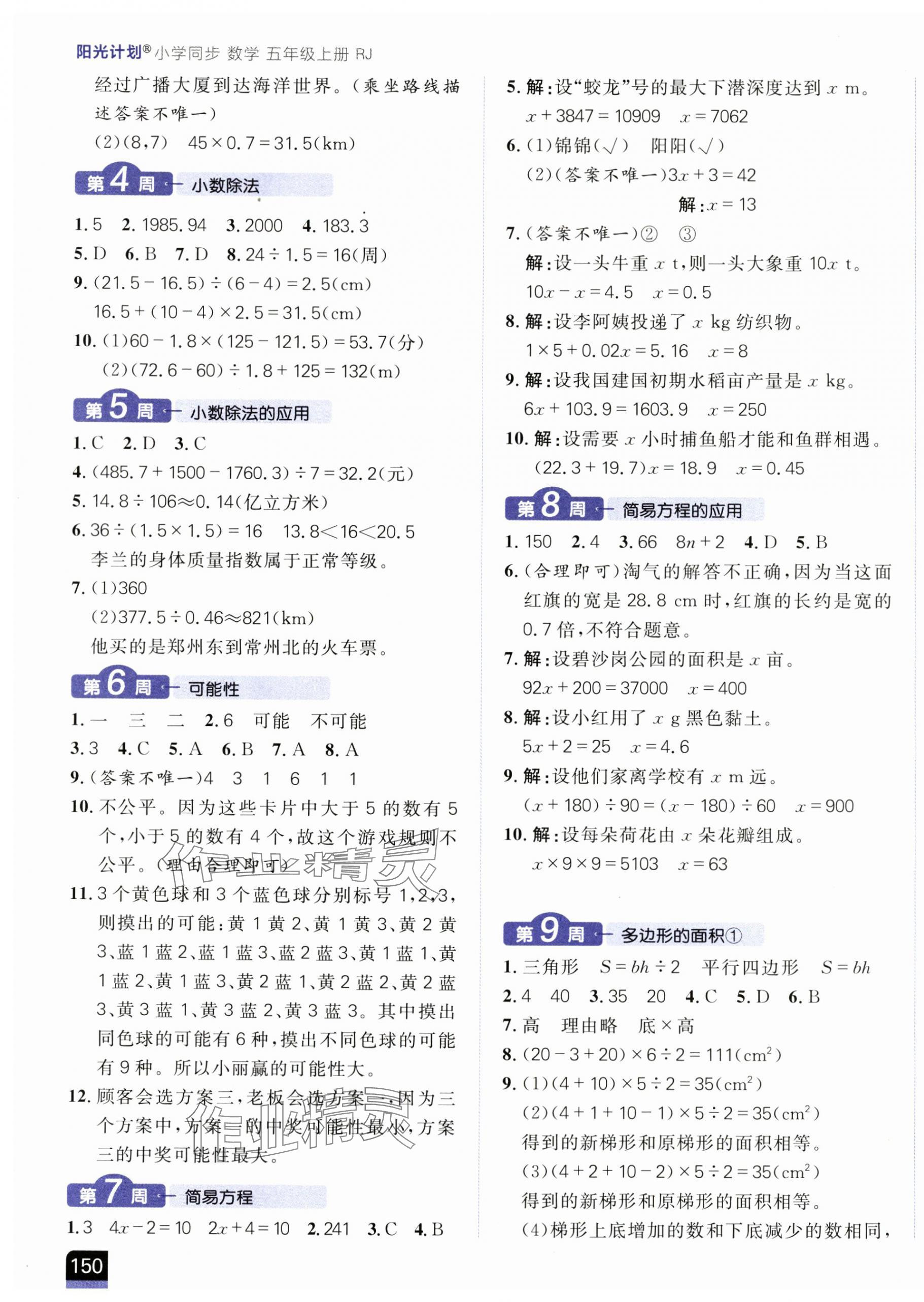注:目前有些书本章节名称可能整理的还不是很完善,但都是按照顺序排列的,请同学们按照顺序仔细查找。练习册 2025年阳光计划小学同步五年级数学上册人教版 答案主要是用来给同学们做完题方便对答案用的,请勿直接抄袭。