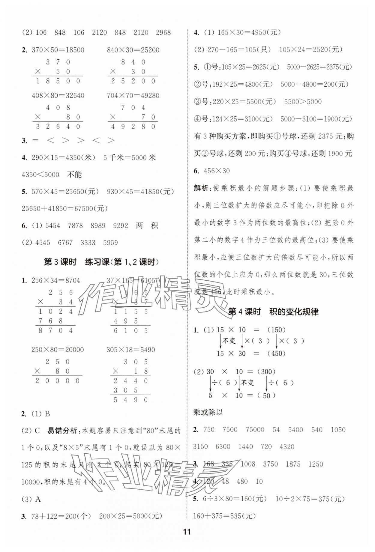 2025年通城学典课时作业本四年级数学上册人教版浙江专版 第11页
