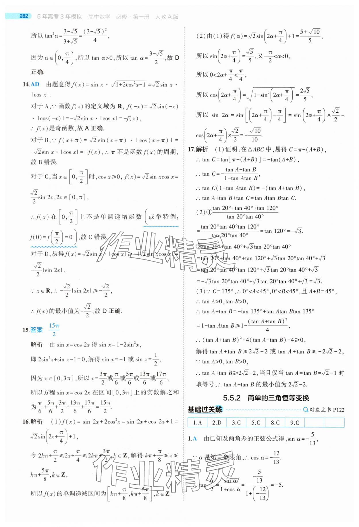 注:目前有些书本章节名称可能整理的还不是很完善,但都是按照顺序排列的,请同学们按照顺序仔细查找。练习册 2025年5年高考3年模拟高中数学必修第一册人教版 答案主要是用来给同学们做完题方便对答案用的,请勿直接抄袭。