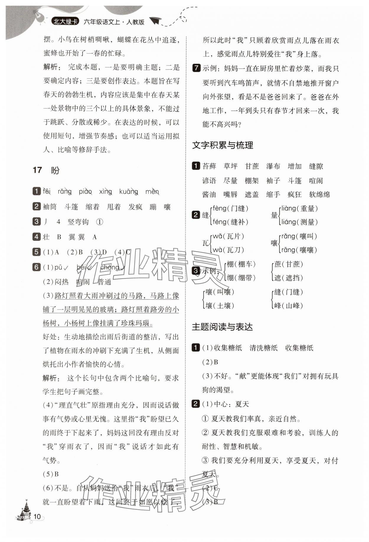 注:目前有些书本章节名称可能整理的还不是很完善,但都是按照顺序排列的,请同学们按照顺序仔细查找。练习册 2025年北大绿卡六年级语文上册人教版 答案主要是用来给同学们做完题方便对答案用的,请勿直接抄袭。