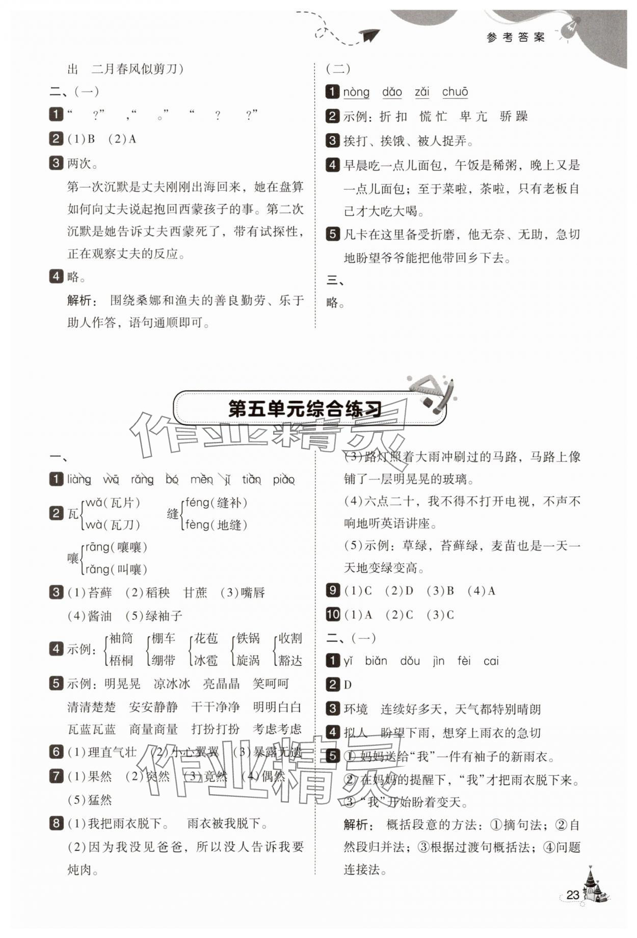注:目前有些书本章节名称可能整理的还不是很完善,但都是按照顺序排列的,请同学们按照顺序仔细查找。练习册 2025年北大绿卡六年级语文上册人教版 答案主要是用来给同学们做完题方便对答案用的,请勿直接抄袭。