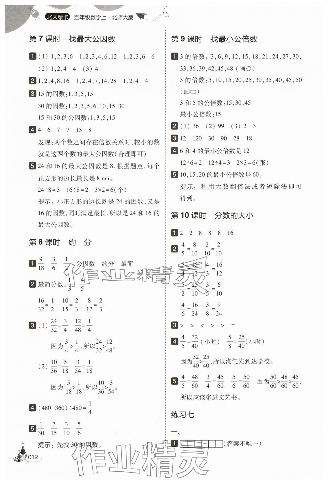 注:目前有些书本章节名称可能整理的还不是很完善,但都是按照顺序排列的,请同学们按照顺序仔细查找。练习册 2025年北大绿卡五年级数学上册北师大版 答案主要是用来给同学们做完题方便对答案用的,请勿直接抄袭。