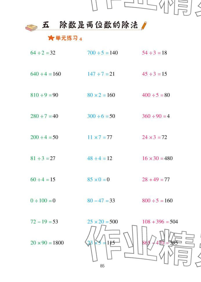 注:目前有些书本章节名称可能整理的还不是很完善,但都是按照顺序排列的,请同学们按照顺序仔细查找。练习册 2025年口算天天练青岛出版社四年级数学上册青岛版 答案主要是用来给同学们做完题方便对答案用的,请勿直接抄袭。