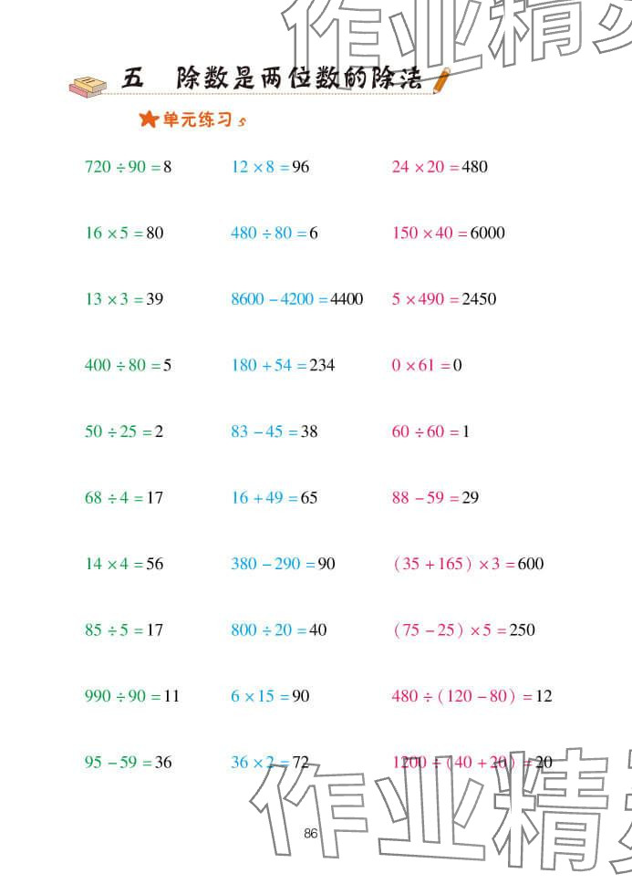 注:目前有些书本章节名称可能整理的还不是很完善,但都是按照顺序排列的,请同学们按照顺序仔细查找。练习册 2025年口算天天练青岛出版社四年级数学上册青岛版 答案主要是用来给同学们做完题方便对答案用的,请勿直接抄袭。