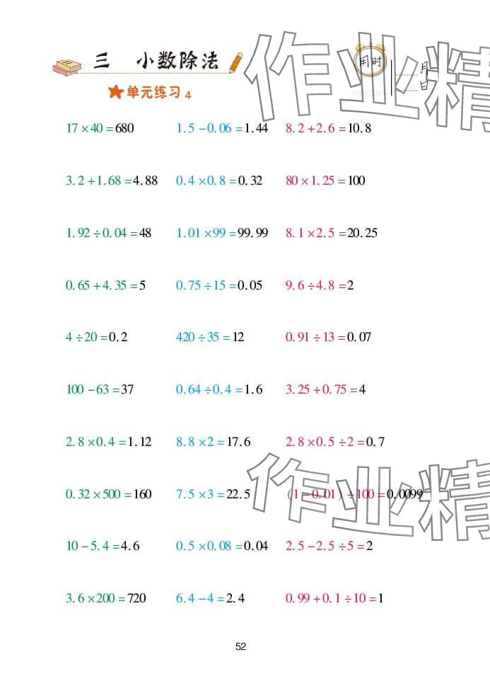 2025年口算天天练青岛出版社五年级数学上册青岛版
