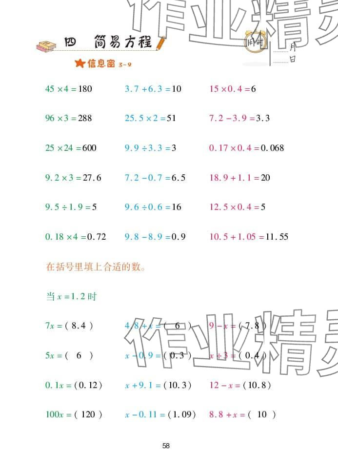 注:目前有些书本章节名称可能整理的还不是很完善,但都是按照顺序排列的,请同学们按照顺序仔细查找。练习册 2025年口算天天练青岛出版社五年级数学上册青岛版 答案主要是用来给同学们做完题方便对答案用的,请勿直接抄袭。