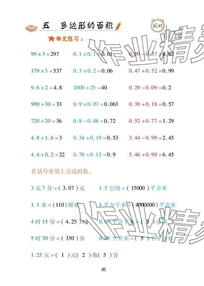 注:目前有些书本章节名称可能整理的还不是很完善,但都是按照顺序排列的,请同学们按照顺序仔细查找。练习册 2025年口算天天练青岛出版社五年级数学上册青岛版 答案主要是用来给同学们做完题方便对答案用的,请勿直接抄袭。