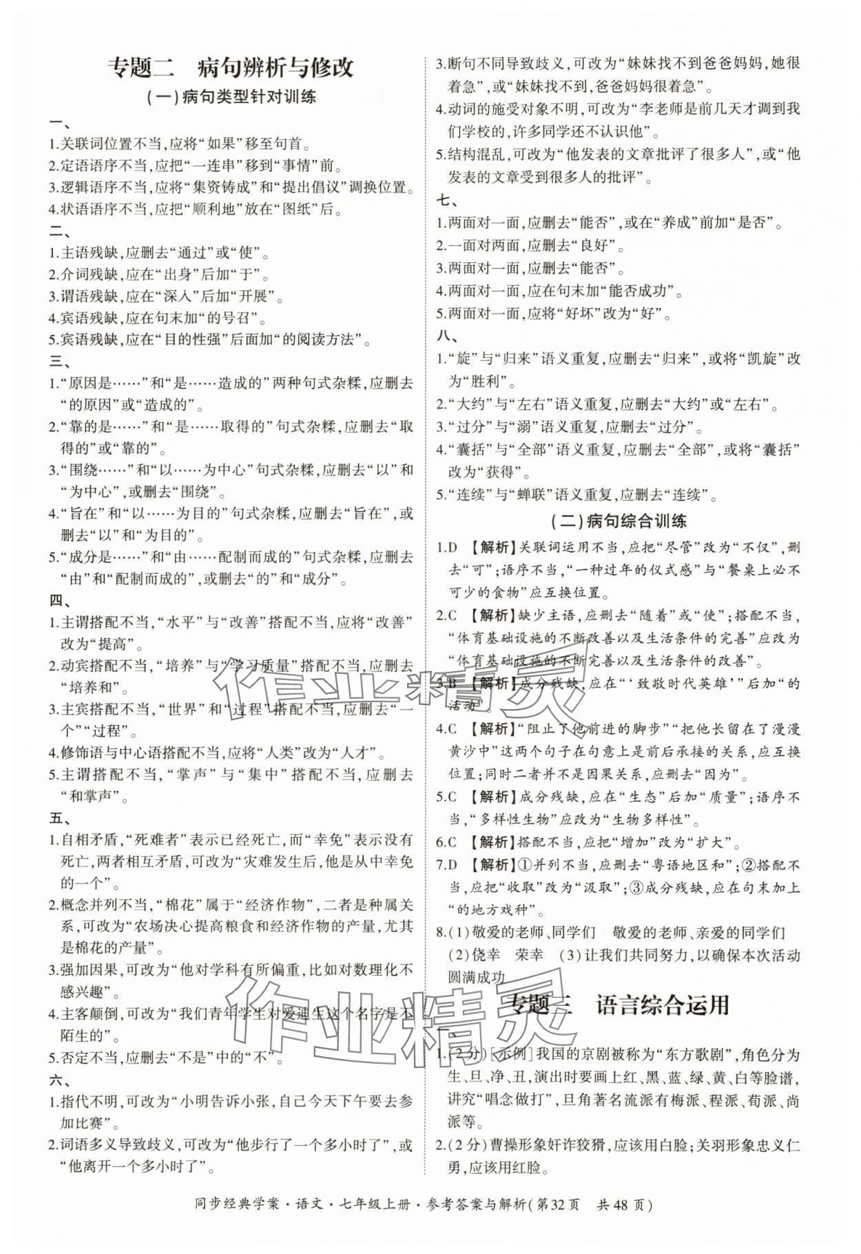 注:目前有些书本章节名称可能整理的还不是很完善,但都是按照顺序排列的,请同学们按照顺序仔细查找。练习册 2025年同步经典学案七年级语文上册人教版 答案主要是用来给同学们做完题方便对答案用的,请勿直接抄袭。
