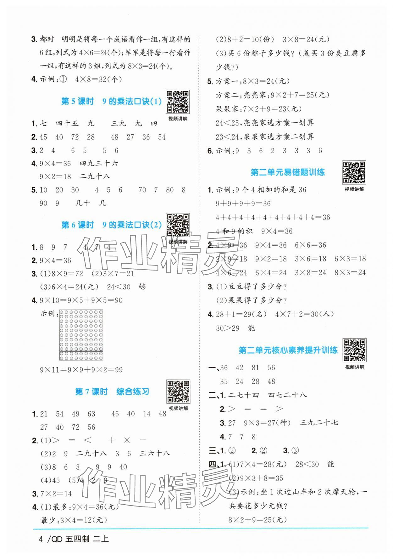 注:目前有些书本章节名称可能整理的还不是很完善,但都是按照顺序排列的,请同学们按照顺序仔细查找。练习册2025年阳光同学课时优化作业二年级数学上册青岛版五四制答案主要是用来给同学们做完题方便对答案用的,请勿直接抄袭。