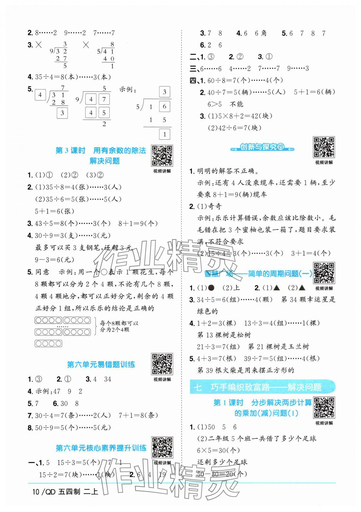 注:目前有些书本章节名称可能整理的还不是很完善,但都是按照顺序排列的,请同学们按照顺序仔细查找。练习册 2025年阳光同学课时优化作业二年级数学上册青岛版五四制 答案主要是用来给同学们做完题方便对答案用的,请勿直接抄袭。