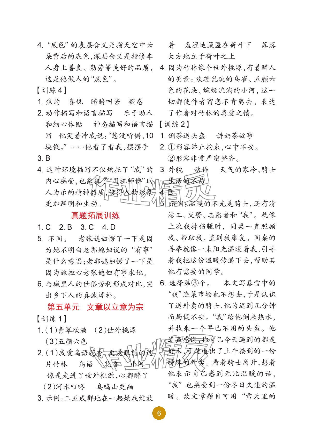 注:目前有些书本章节名称可能整理的还不是很完善,但都是按照顺序排列的,请同学们按照顺序仔细查找。练习册 2025年阅读理解专项训练六年级语文上册人教版 答案主要是用来给同学们做完题方便对答案用的,请勿直接抄袭。