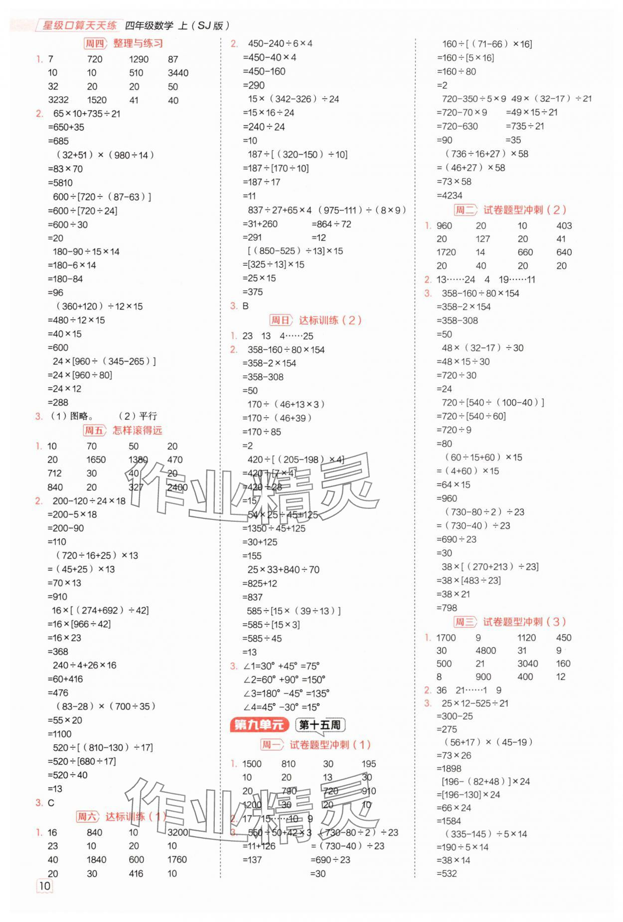 注:目前有些书本章节名称可能整理的还不是很完善,但都是按照顺序排列的,请同学们按照顺序仔细查找。练习册 2025年星级口算天天练四年级数学上册苏教版 答案主要是用来给同学们做完题方便对答案用的,请勿直接抄袭。