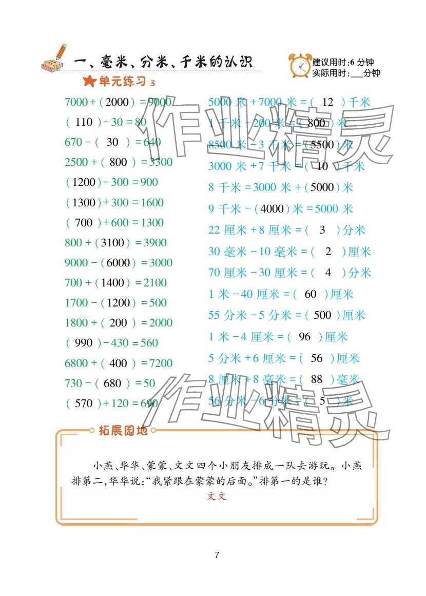 注:目前有些书本章节名称可能整理的还不是很完善,但都是按照顺序排列的,请同学们按照顺序仔细查找。练习册 2025年口算天天练青岛出版社三年级数学上册青岛版 答案主要是用来给同学们做完题方便对答案用的,请勿直接抄袭。