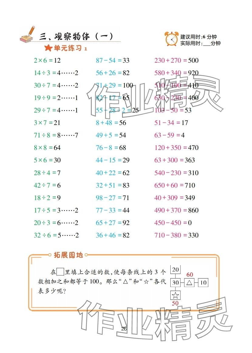 注:目前有些书本章节名称可能整理的还不是很完善,但都是按照顺序排列的,请同学们按照顺序仔细查找。练习册 2025年口算天天练青岛出版社三年级数学上册青岛版 答案主要是用来给同学们做完题方便对答案用的,请勿直接抄袭。