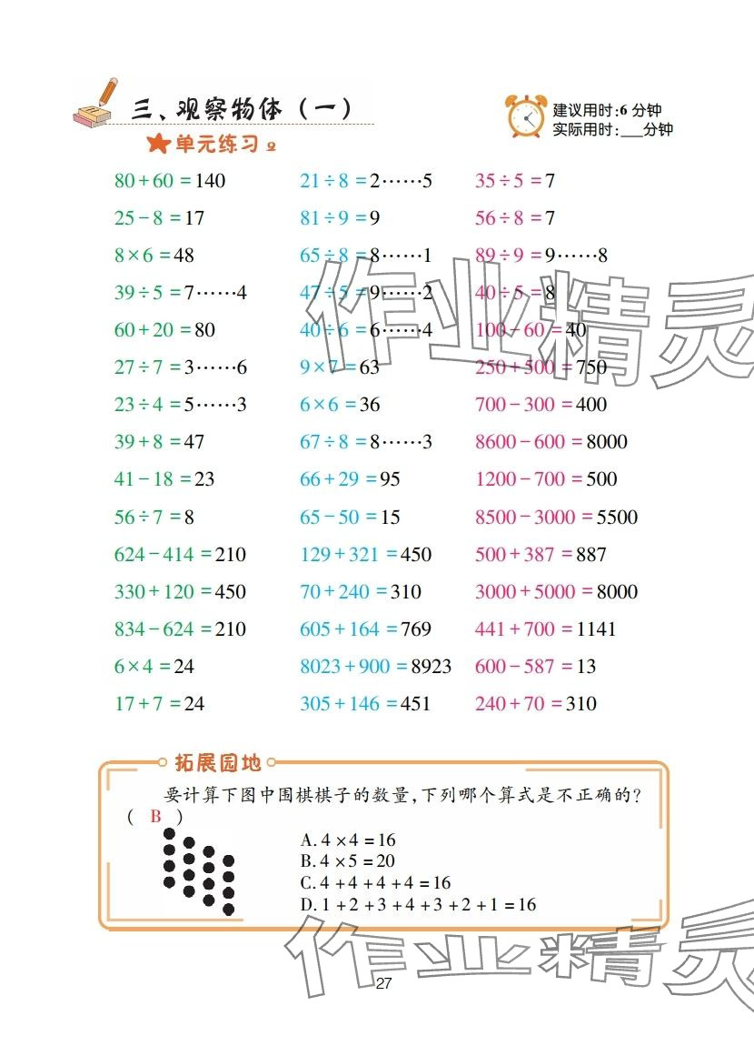 注:目前有些书本章节名称可能整理的还不是很完善,但都是按照顺序排列的,请同学们按照顺序仔细查找。练习册 2025年口算天天练青岛出版社三年级数学上册青岛版 答案主要是用来给同学们做完题方便对答案用的,请勿直接抄袭。