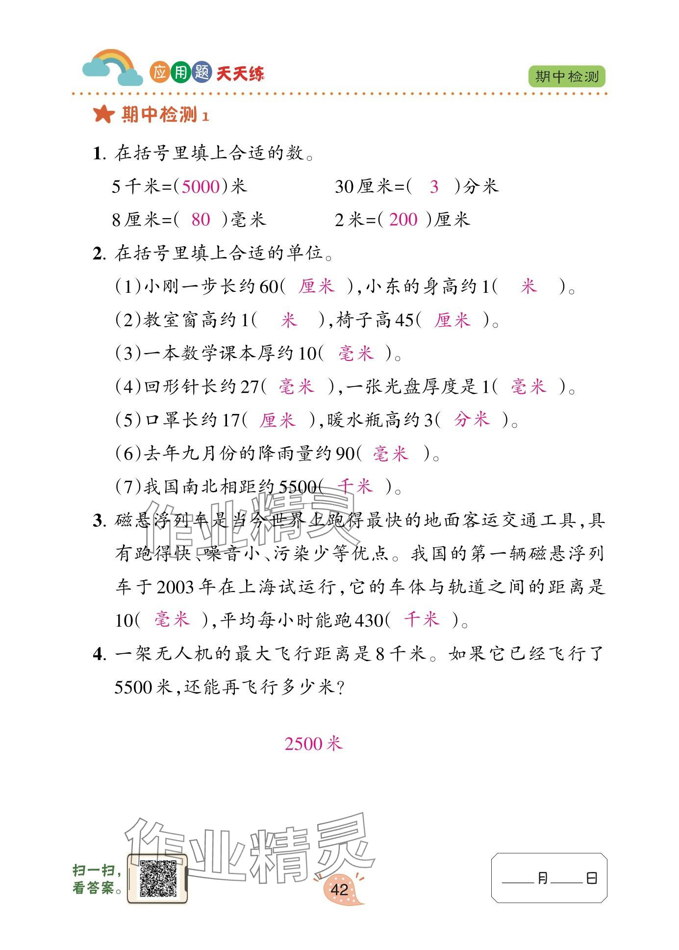 注:目前有些书本章节名称可能整理的还不是很完善,但都是按照顺序排列的,请同学们按照顺序仔细查找。练习册 2025年应用题天天练青岛出版社三年级数学上册青岛版 答案主要是用来给同学们做完题方便对答案用的,请勿直接抄袭。