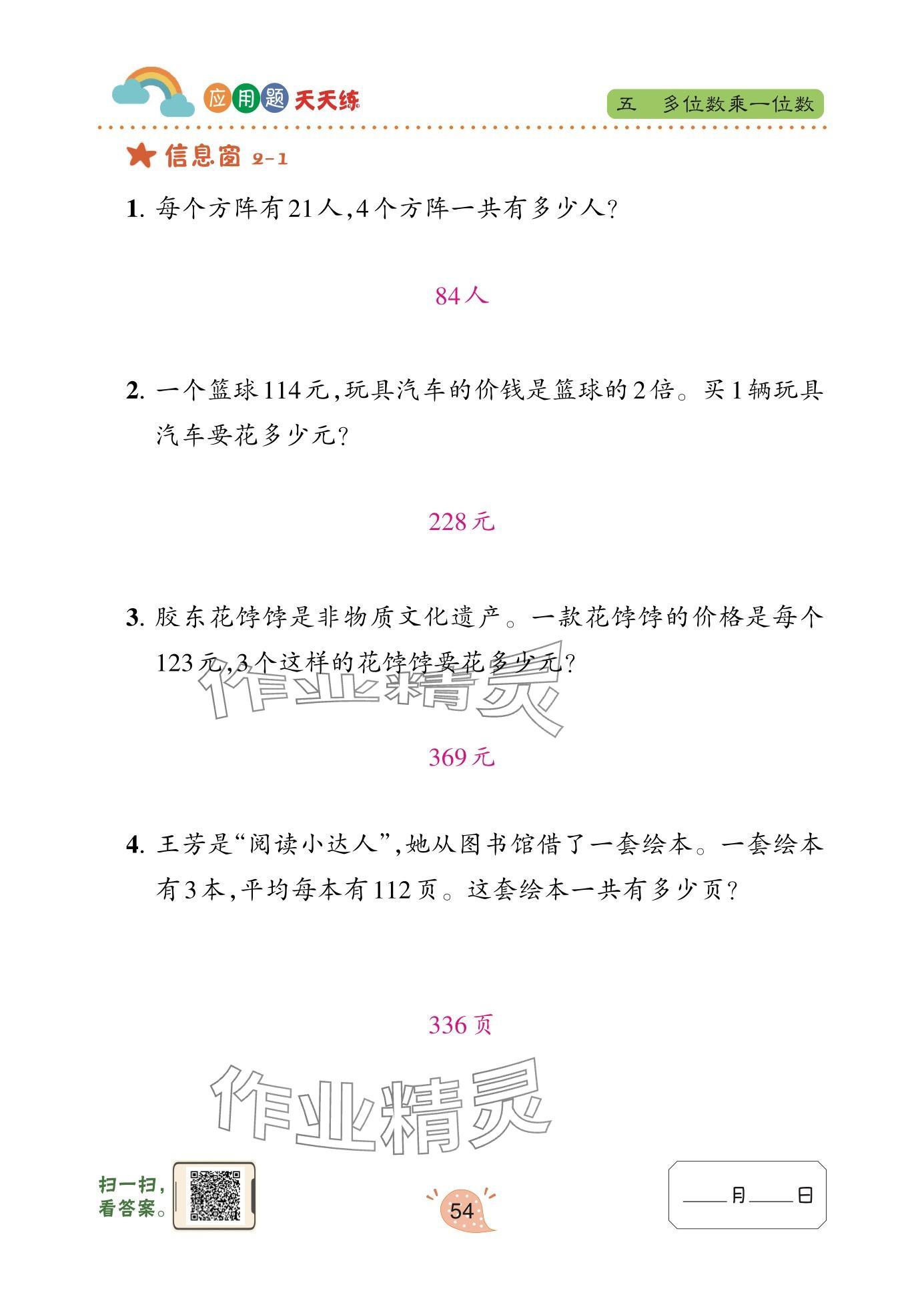 注:目前有些书本章节名称可能整理的还不是很完善,但都是按照顺序排列的,请同学们按照顺序仔细查找。练习册 2025年应用题天天练青岛出版社三年级数学上册青岛版 答案主要是用来给同学们做完题方便对答案用的,请勿直接抄袭。