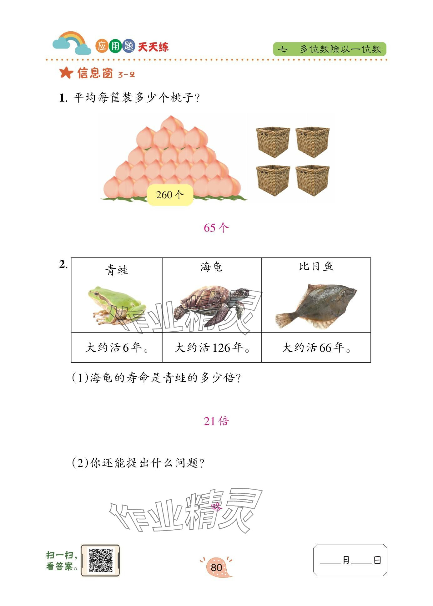 注:目前有些书本章节名称可能整理的还不是很完善,但都是按照顺序排列的,请同学们按照顺序仔细查找。练习册 2025年应用题天天练青岛出版社三年级数学上册青岛版 答案主要是用来给同学们做完题方便对答案用的,请勿直接抄袭。