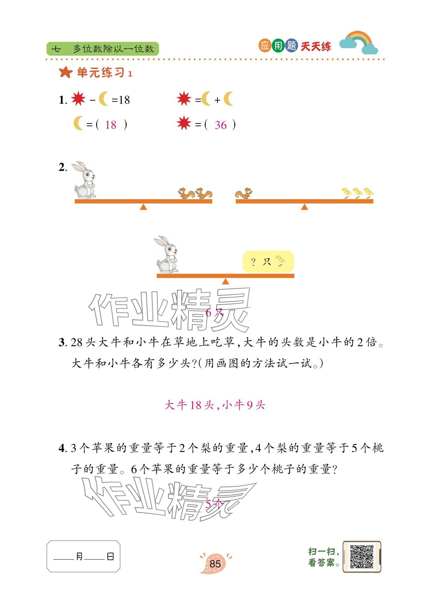 注:目前有些书本章节名称可能整理的还不是很完善,但都是按照顺序排列的,请同学们按照顺序仔细查找。练习册 2025年应用题天天练青岛出版社三年级数学上册青岛版 答案主要是用来给同学们做完题方便对答案用的,请勿直接抄袭。